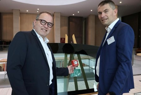De Puisseguin à l’industrialisation, Franck Potiez, directeur Stratégie d’AGUILA, a retracé les 10 ans d’innovation : « Un vendredi matin, le 23 octobre 2015, il y a eu un drame. Le lundi suivant, on reçoit un appel d’un représentant de la Sécurité routière. Il nous dit : “Messieurs, si vous êtes capables de briser une vitre en quelques secondes, vous allez sauver des vies.” »